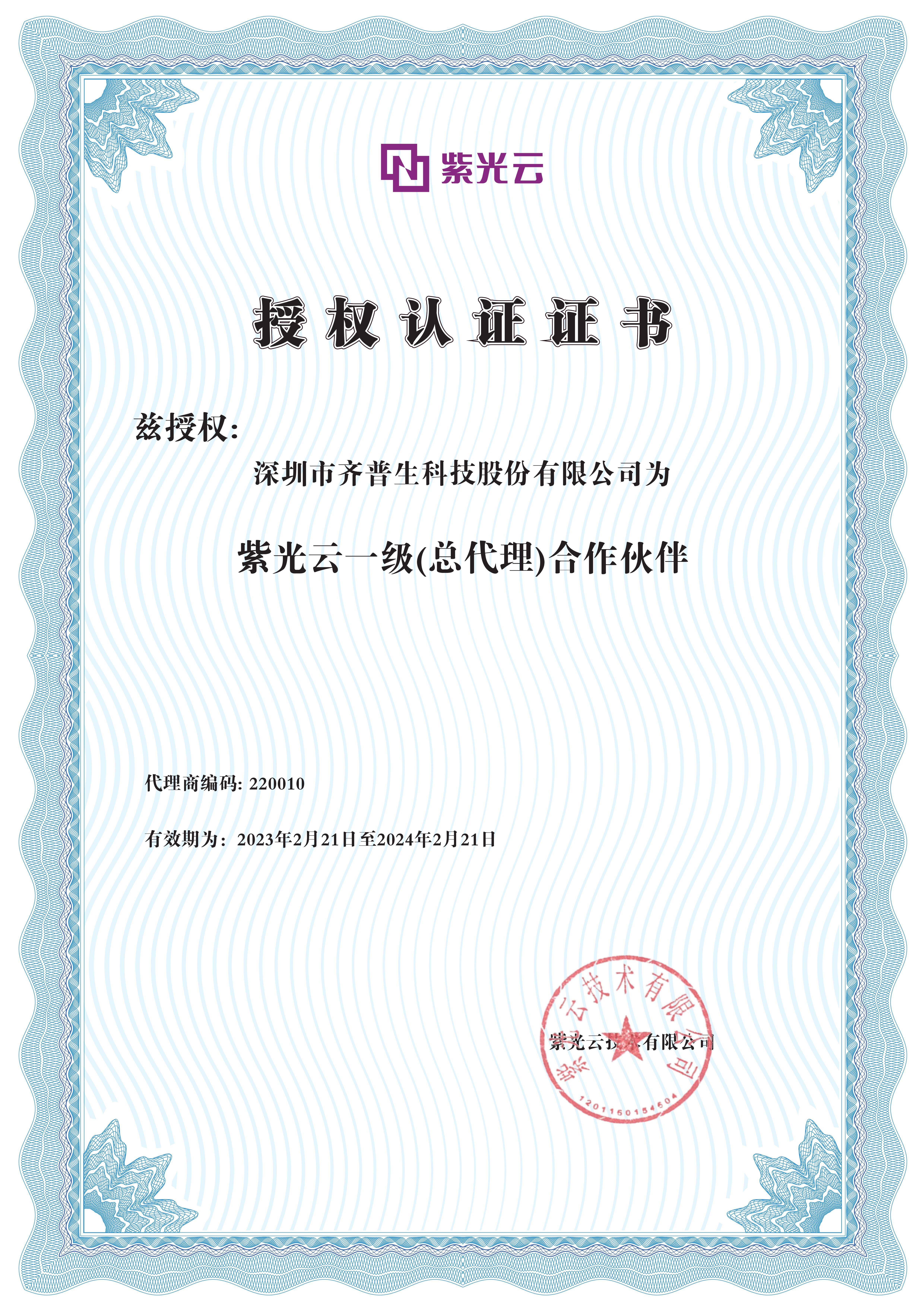 • 2024紫光華智一級(jí)渠道商(珠海公司)
