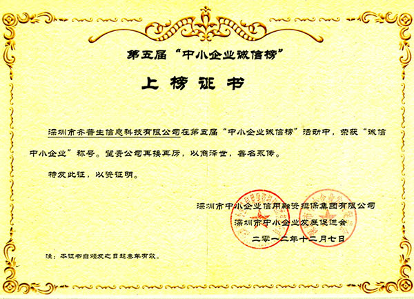 誠(chéng)信中小企業(yè)證書(shū)