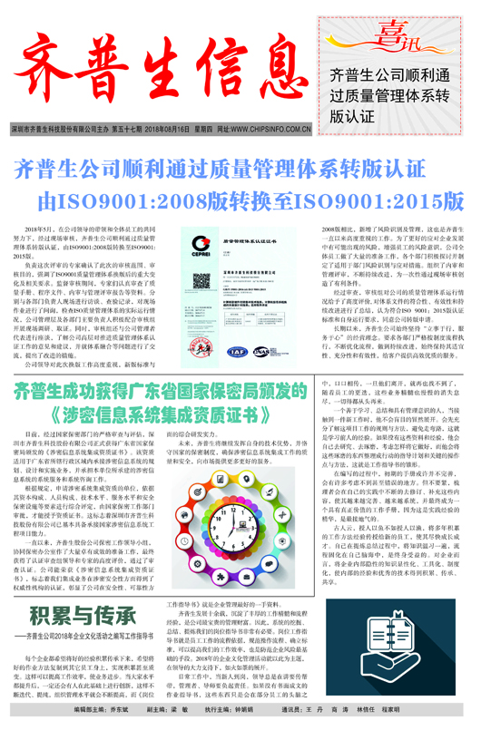 齊普生成功獲得廣東省國(guó)家保密局頒發(fā)的 《涉密信息系統(tǒng)集成資質(zhì)證書(shū)》