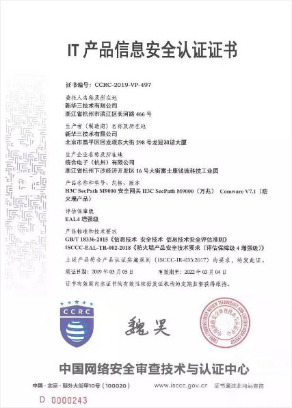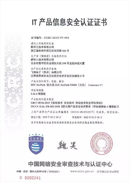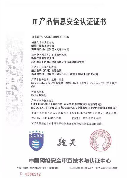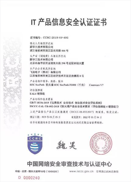 新華三全系列防火墻獲得國內首家EAL4增強級(最高級)認證